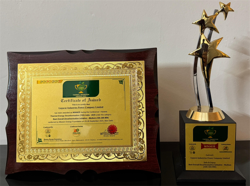 GIPCL-SLPP received “Thermal Transition Award-2025” under “Best Overall Decarbonisation Initiative - Medium (100-500 MW)” category during “Thermal Energy Decarbonization (TED) India - 2025” Conference and Awards program organized by Mission Energy Foundation on 26